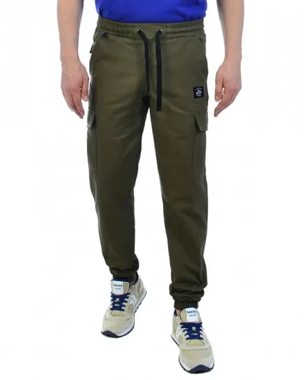 Крой - широкие сверху, зауженные снизу Пояс на резинке с шнуровкой Два косых кармана по бокам, два боковых кармана и задний карман на липучке Эластичные манжеты Материал: 100% хлопок: ткань канвас Фирменная нашивка