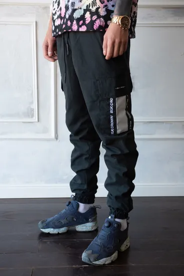 Джоггеры утеплённые флисовым подкладом. Пояс брюк на резинке и дополнен шнурком для удодобства. Низ штанин тоже на резинке. Два врезных кармана спреди и 2 накладных кармана на липучке по бокам, дополненные светоотражающими элементами.