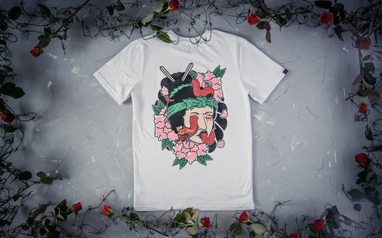 Футболка уличного бренда Hook, выполненная из хлопковой ткани. Традиционный силуэт, прямой крой и круглый эластичный ворот. Футболка представлена в однотонной расцветке с ярким принтом на спине и надписью на груди. Светочувствительная краска — главный компонент этого волшебства, она меняет цвет под воздействием солнечных лучей, ультрафиолета или другого источника света. Данная краска изготавливается на основе фотохромного органического экологически безопасного пигмента.
