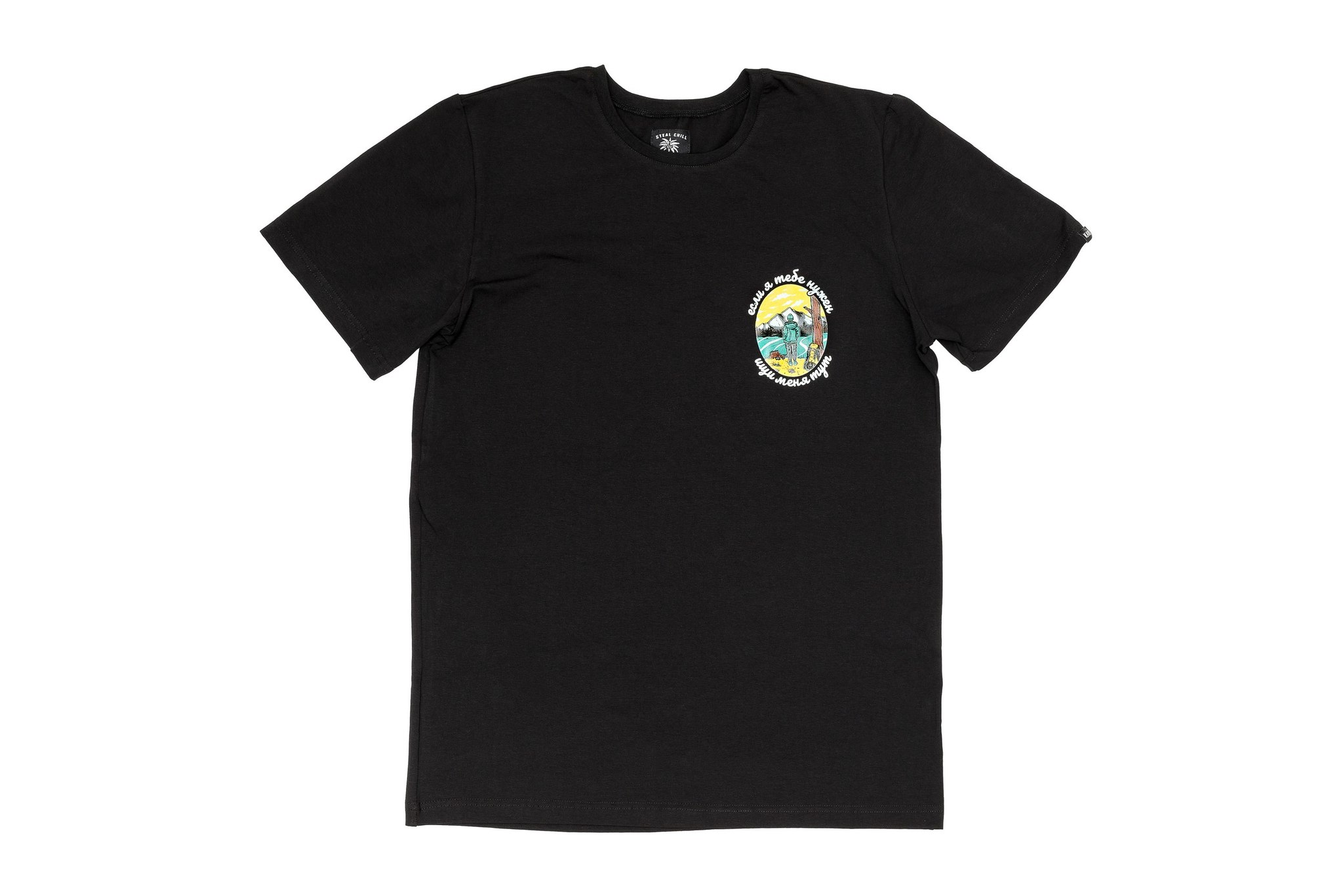 Футболка уличного бренда STEAL CHILL, выполненная из хлопковой ткани. Традиционный силуэт, прямой крой и круглый эластичный ворот. Футболка представлена в однотонной расцветке с ярким принтом на груди.