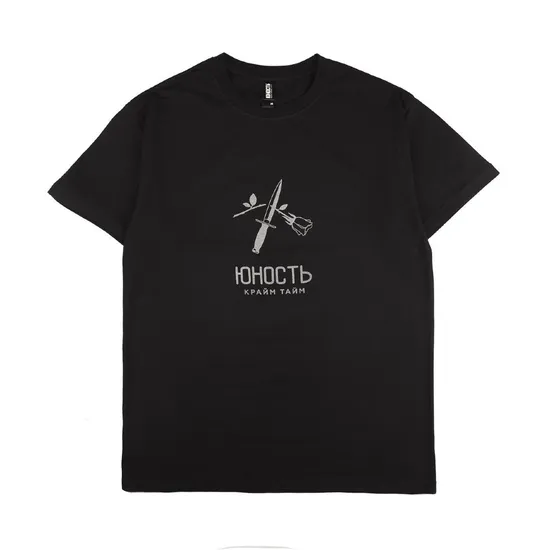 Футболка ЮНОСТЬ выполнена из хлопковой ткани. Традиционный силуэт, прямой крой и круглый ворот. Футболка представлена в однотонной расцветке, с нанесением светотражающегося принта высокой прочности.