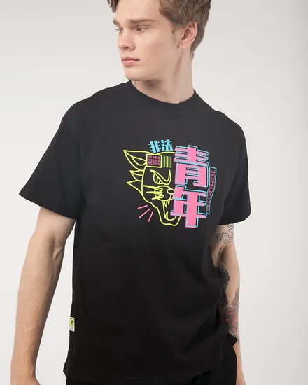 Футболка ЮНОСТЬ Неоновый кот - флюоресценция Черный