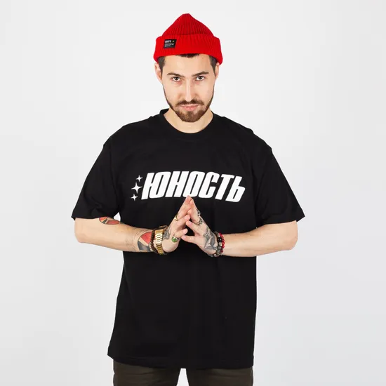 Футболка ЮНОСТЬ™ «Tri-Stars» - белый лого Черный