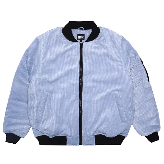 Утеплённый вельветовы бомбер. Манжеты на рукавах и по низу изделия. Два врезных кармана по бокам снаружи и один внутренний карман. Карман на молнии на рукаве.