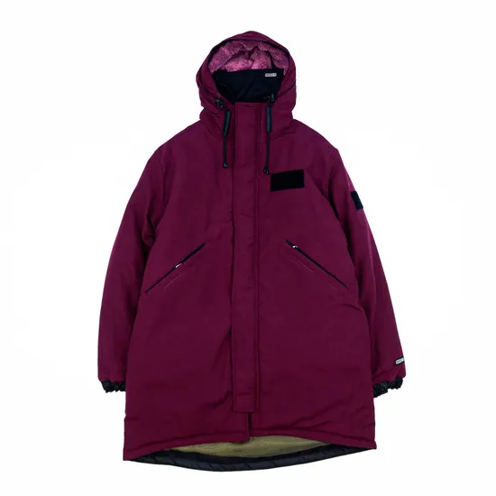 Зимняя парка бордового цвета линейки «Visual Vandal» с влагозащитной пропиткой. Фронтальное усиление в критически важных местах и встроенная маска. Платформа для патча на груди и плече. До – 15 градусов.