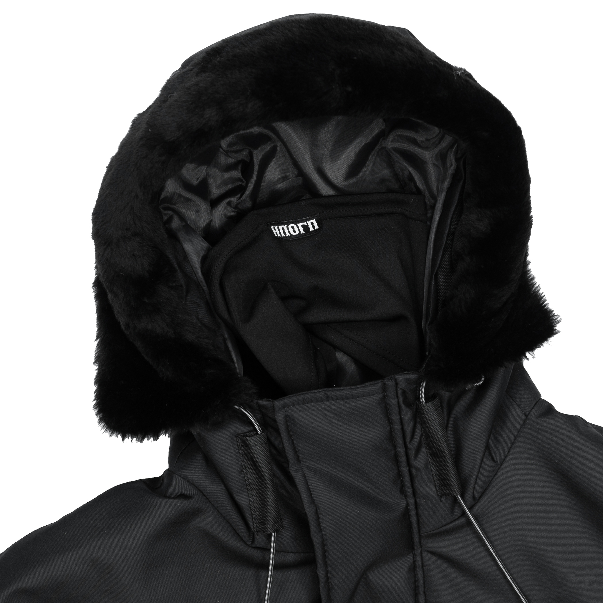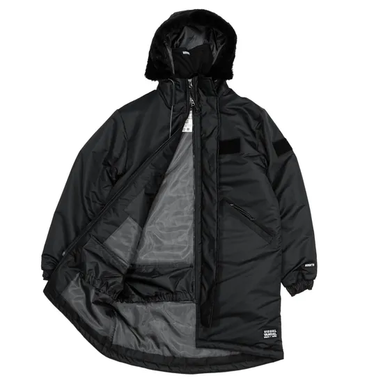 Парка до — 25 градусов. Куртка на молнии с двойной собачкой и планкой с магнитными клепками. Манжеты на резинке. Внутри куртки вшита ветрозащитная планка с клёпкой, для наджёжной защиты от мороза и ветра. Капюшон с меховой опушкой, которую в случае ветра или снегопада можно развернуть, а также внутри капюшона расположен регулируемый шнурок с фиксаторами. Фронтальное усиление в критически важных местах для свободы движений и встроенная маска в капюшон, которую можно использовать и как шарф. Два кармана на усиленной молнии снаружи и два глубоких крмана внутри. Платформа для патча на груди, а также плече (патчи продаются отдельно).