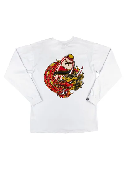 Лонгслив HOOK выполнен из хлопковой ткани. Традиционный силуэт, прямой крой, втачной рукав и круглый ворот. Лонгслив представлен в белой расцветке, с нанесением принта на груди и на спине.