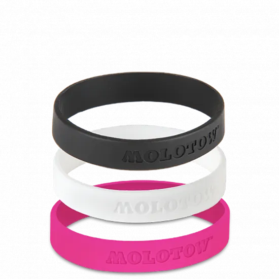 Набор из двух резиновых браслетов Molotow черного и розового цветов. Отличный сувенир для всех любителей граффити.