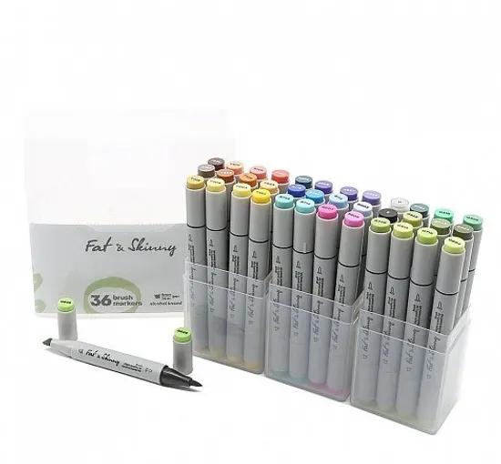 Набор из 36 двухсторонних Brush маркеров Fat&Skinny - самый оптимальный вариант для творчества. Brush-маркеры Fat&Skinny отлично подходят для рисования эскизов, иллюстраций, архитектурных рисунков и воплощения самых творческих идей на бумаге.