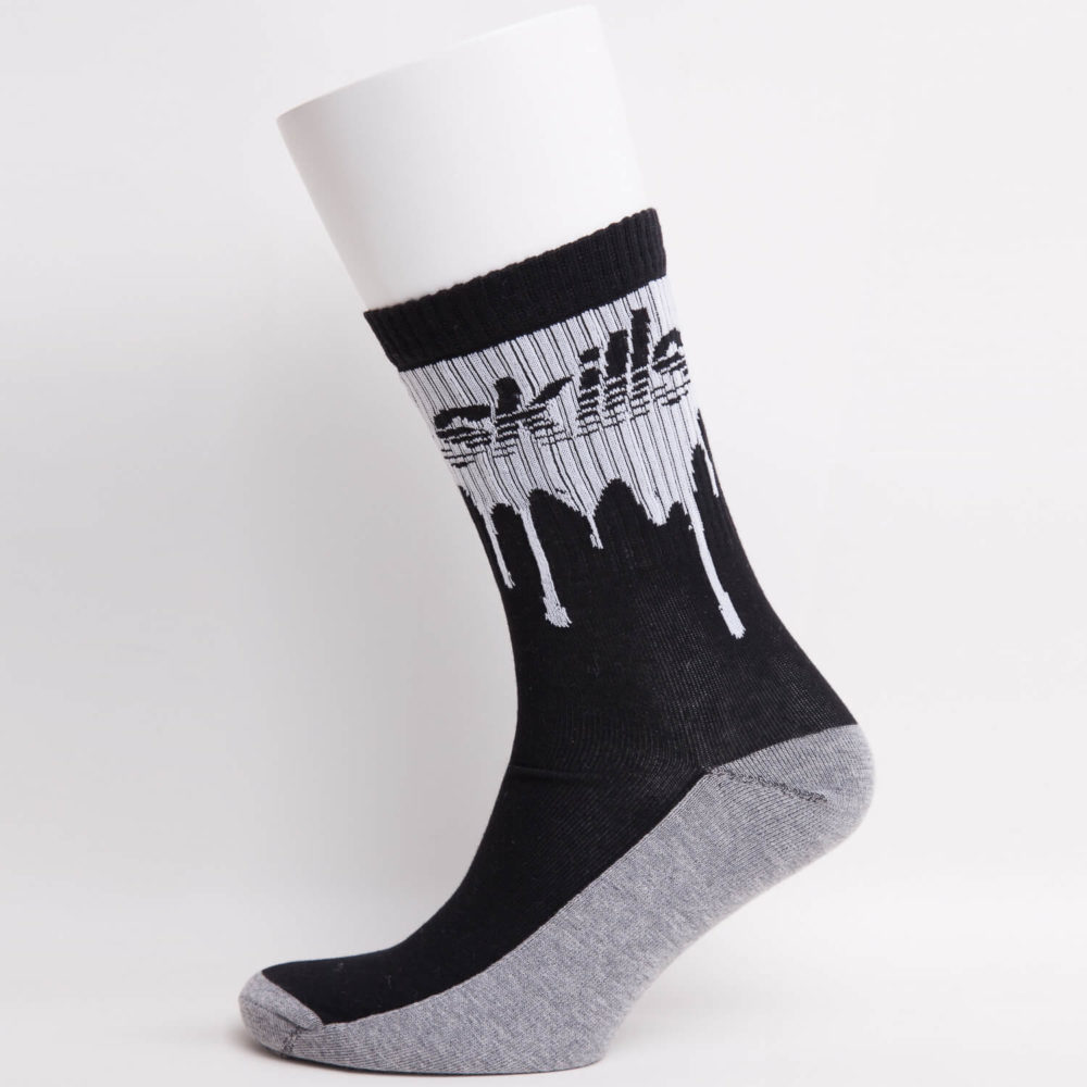 Skills Домино: черные носки с белыми потеками. Расцветка названа в честь персонажа комиксов Marvel, Нины Турман aka Домино, чьей суперсилой является управление вероятностями (читай «Немыслимая удача»). Логотип бренда расположен с одной стороны носка, что порой помогает отличить правый от левого.