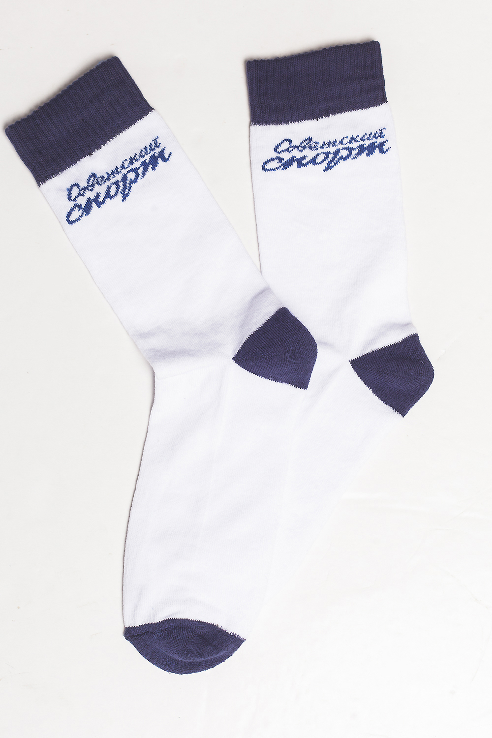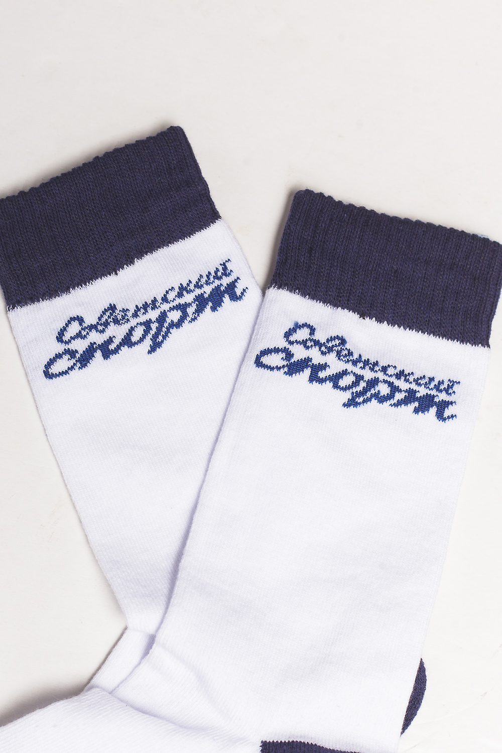 Махровые носки от российского бренда Запорожец, выполненные из ткани на основе хлопка. Традиционная форма, средняя длина, укрепленный носок с пяткой и эластичная резинка в верхней части, обеспечивающая оптимальную фиксацию. Носки представлены в комбинированной расцветке, украшенной вышивкой «Советский спорт»