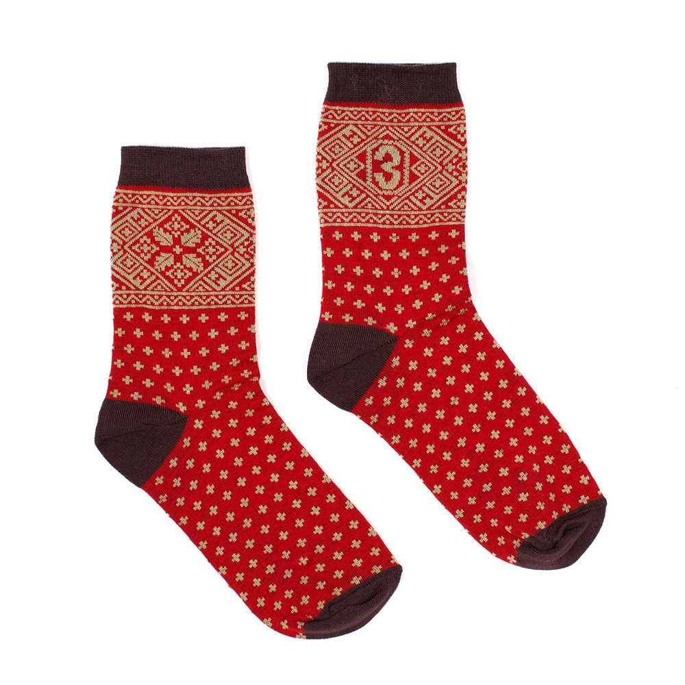 Женские носки от российской марки "Запорожец", выполненные из натуральной хлопковой ткани. Традиционная форма, средняя длина, укрепленный носок и пятка. Носки представлены в оригинальной расцветке, украшенной традиционным орнаментом.
