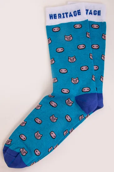 Носки от российского бренда Запорожец, выполненные из ткани на основе хлопка. Традиционная форма, средняя длина, укрепленный носок с пяткой и эластичная резинка в верхней части, обеспечивающая оптимальную фиксацию. Носки представлены в оригинальной расцветке, украшенной изображениями пятачков и хрюшек.