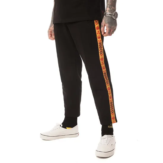 Спортивные брюки «Ядерная весна» из одноименной коллекции выполнены из высококачественной хлопковой ткани с добавлением полиэстера. Зауженный силуэт. Прямой крой. Два кармана для рук. Регулируемый шнур в поясе. Эластичные манжеты. Представлены в единой черной расцветке. Украшены жаккардовыми лентами, выполненными в стилистике новой коллекции «Ядерная весна», по внешнему шву штанин.