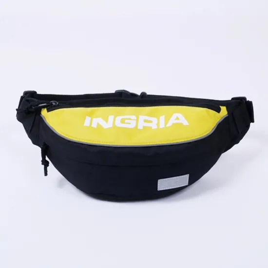 Поясная сумка от Anteater, два отделения на молнии. Рефлективная нашивка с логотипом и полоска на верхней грани сумки. Коллаборация с велосипедным брендом Ingria Racing.