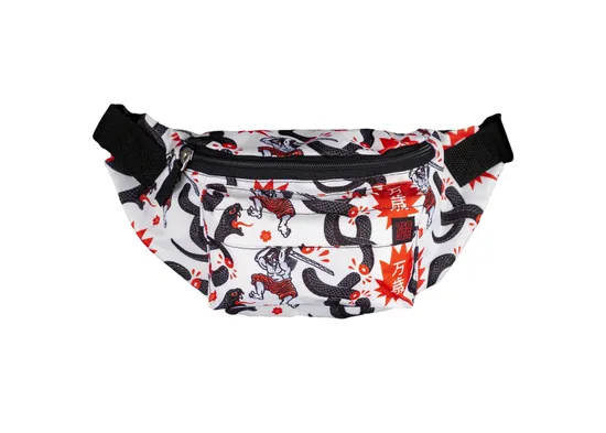 Поясная сумка выполнена из плотного износостойкого материала. Вечный принт.