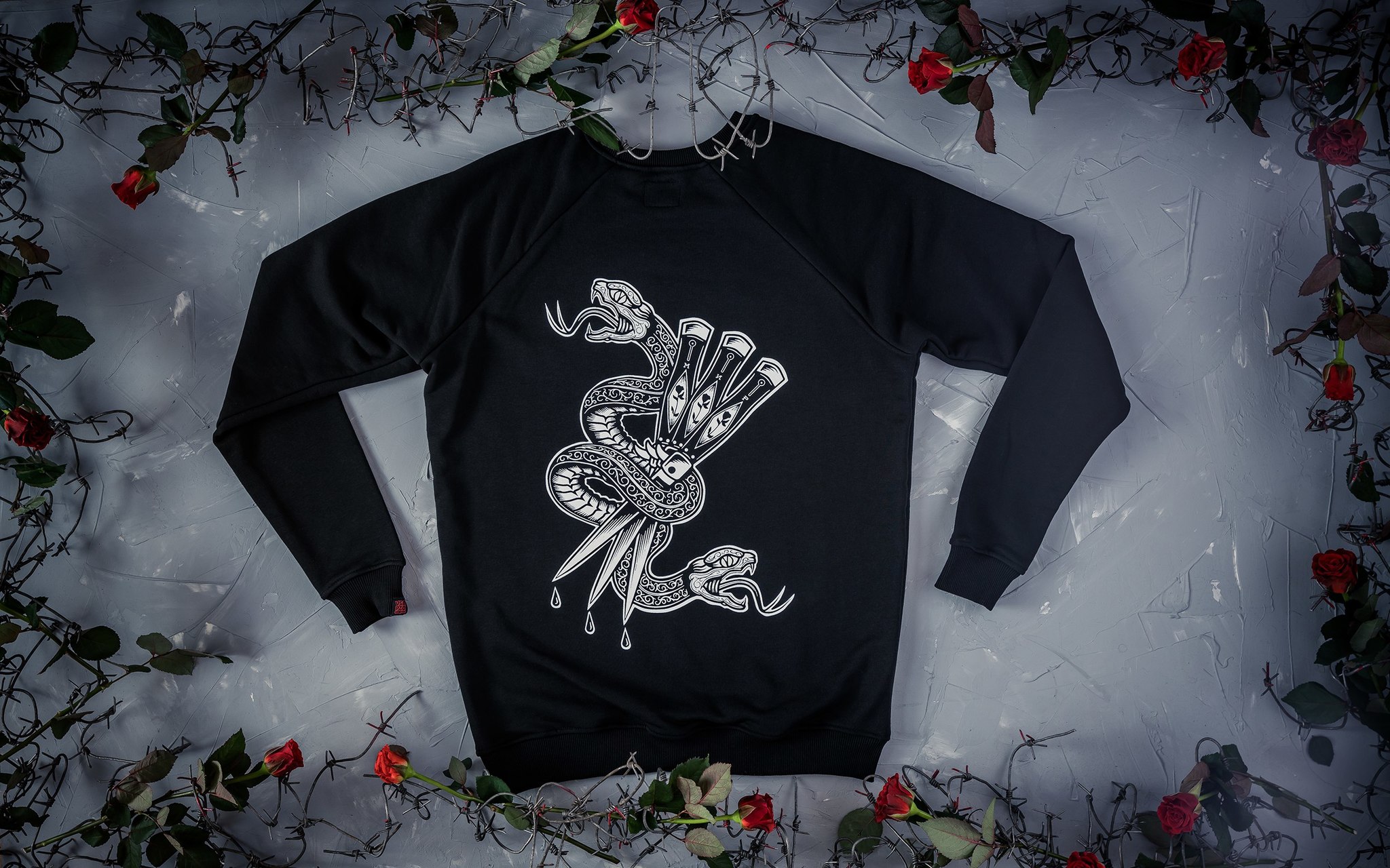 Толстовка от уличного бренда Hook, выполненная из мягкой и приятной хлопковой ткани, петелька внутри. Традиционный силуэт, прямой крой, рукав реглан и круглый ворот. Эластичные манжеты на рукавах и в нижней части. Толстовка представлена в однотонной расцветке, украшенной изображением на спине и на груди "беда не приходит одна".
