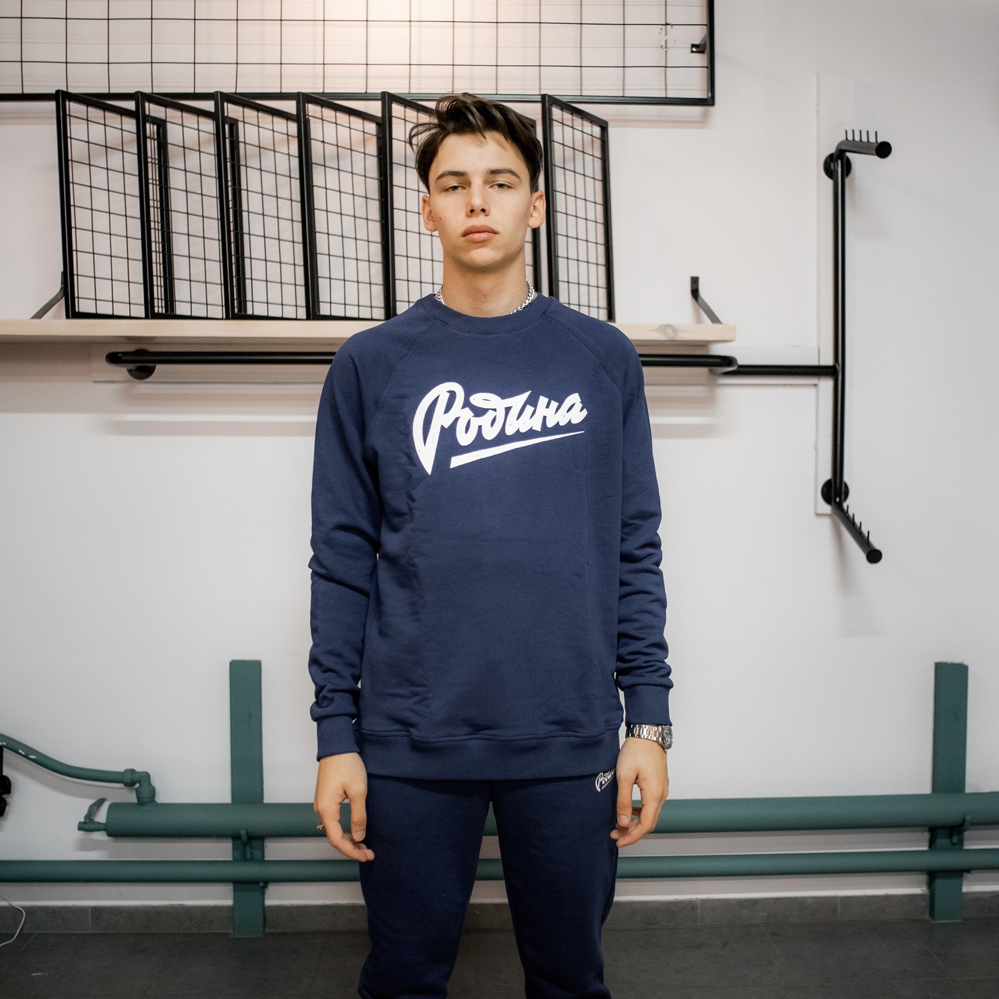 Утепленный свитшот Родина с принтом. Стандартный крой, рукав-реглан. Выполнен из приятного к телу футера с начесом, для комфортной носки в прохладную погоду. Монохромная расцветка и фирменный принт на груди выполненный по технологии шелкографии.