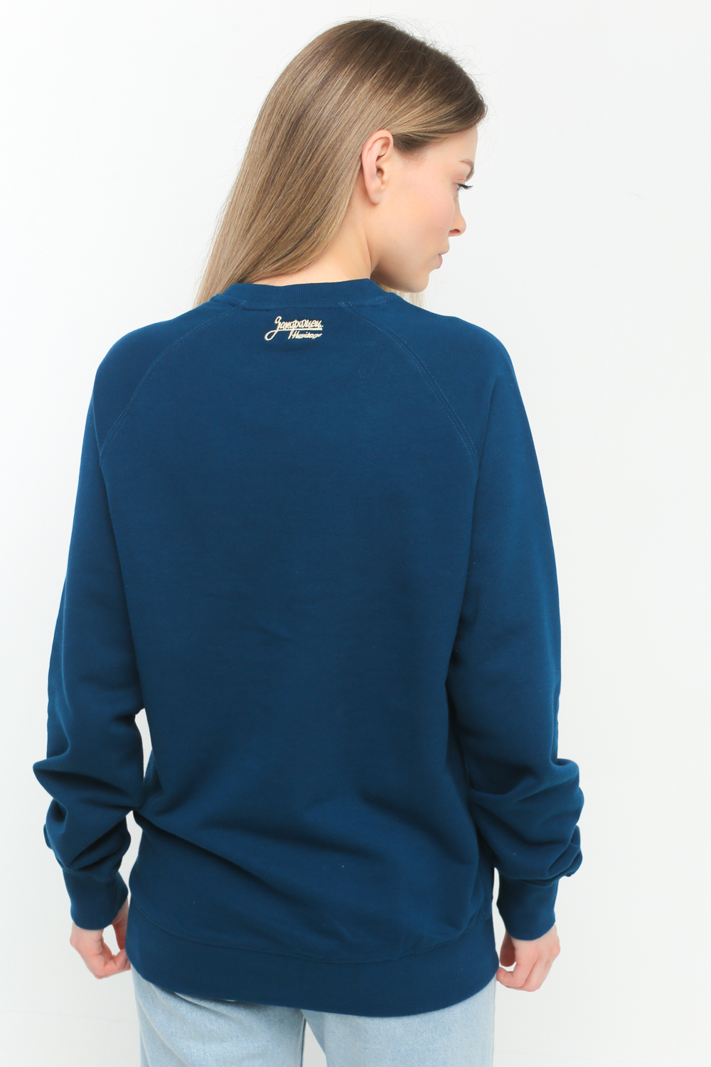 Традиционный силуэт, прямой крой, рукав реглан и круглый ворот. Эластичные манжеты на рукавах и в нижней части.