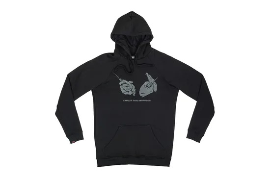 Худи с капюшоном от уличного бренда Hook, выполненный из мягкой и приятной хлопковой ткани. Традиционный силуэт, прямой крой, рукав реглан, удобный капюшон с регулируемым шнуром и карман-кенгуру. Эластичные манжеты на рукавах и в нижней части. Толстовка представлена в однотонной расцветке, украшенной светоотражающимся изображением.
